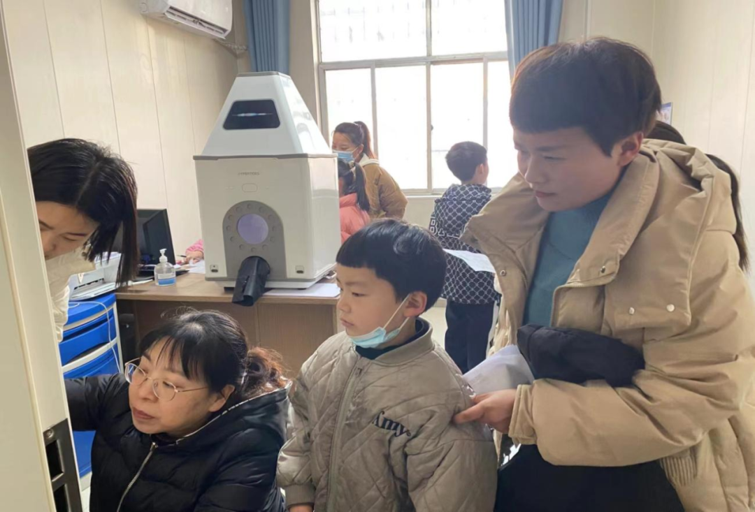 兒童保健科謝秀杰副主任醫(yī)師給兒童進行身高、體重的篩查。