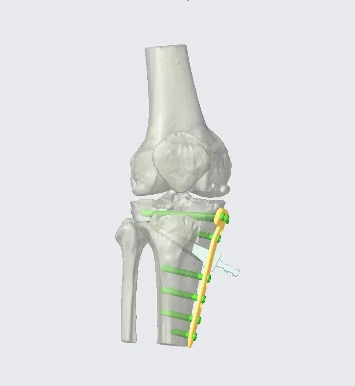 2月26日,漯河市骨科醫(yī)院(漯河醫(yī)專二附院、漯河市立醫(yī)院)膝關(guān)節(jié)外科、運(yùn)動損傷科(骨六科)在保膝治療方面取得了新的突破,李付彬主任帶領(lǐng)岳龍等團(tuán)隊(duì)醫(yī)師,順利完成“計(jì)算機(jī)精準(zhǔn)術(shù)前規(guī)劃聯(lián)合3D打印截骨導(dǎo)板輔助脛骨高位截骨治療膝關(guān)節(jié)骨性關(guān)節(jié)炎”的手術(shù),這在漯河市尚屬首例!