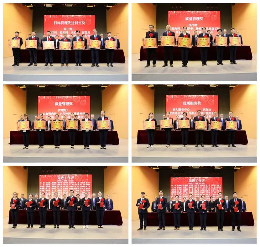 本次工作會(huì)是醫(yī)院開啟2024年高質(zhì)量發(fā)展新篇章、奮進(jìn)三甲創(chuàng)建新征程關(guān)鍵節(jié)點(diǎn)上召開的鼓干勁、聚合力的重要會(huì)議。副院長(zhǎng)謝彩玲、副院長(zhǎng)郭長(zhǎng)根、紀(jì)委書記孟德陽、副院長(zhǎng)張曉東、工會(huì)主席李世學(xué)按照大會(huì)既定議程,依次宣讀了2023年度先進(jìn)集體、先進(jìn)工作者等表彰文件和表彰名單,對(duì)2023年度特殊貢獻(xiàn)獎(jiǎng)、目標(biāo)管理先進(jìn)科室、質(zhì)量管理獎(jiǎng)、優(yōu)質(zhì)服務(wù)獎(jiǎng)、先進(jìn)工作者進(jìn)行了表彰。被表彰科室代表和先進(jìn)個(gè)人代表披紅戴花,精神抖擻,從院領(lǐng)導(dǎo)手中接過象征榮譽(yù)和期望的獎(jiǎng)牌、獎(jiǎng)狀,熱烈的掌聲響徹學(xué)術(shù)報(bào)告廳,展現(xiàn)了二院人奮勇拼搏、干必出彩的良好精神風(fēng)貌,為新的一年工作擂響了戰(zhàn)鼓,鼓足了干勁。