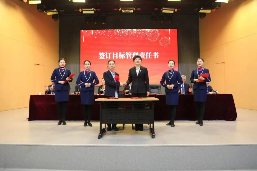 表彰結(jié)束后,黨委書記魏松與黨支部書記代表--兒科黨支部書記郭先鋒簽訂了2024年黨建和黨風(fēng)廉政建設(shè)目標(biāo)責(zé)任書,院長(zhǎng)王瑾與科主任代表--婦產(chǎn)科主任井紅鴿簽訂了2024年科室目標(biāo)管理責(zé)任書,醫(yī)院用兩類“軍令狀”轉(zhuǎn)化為新的一年工作的“指揮棒”和“動(dòng)員令”,精準(zhǔn)指引各科室新一年發(fā)展方向。