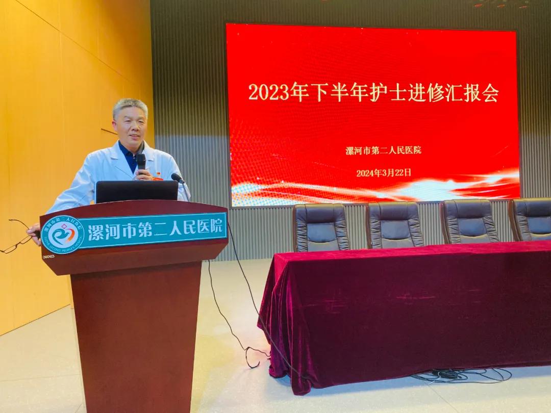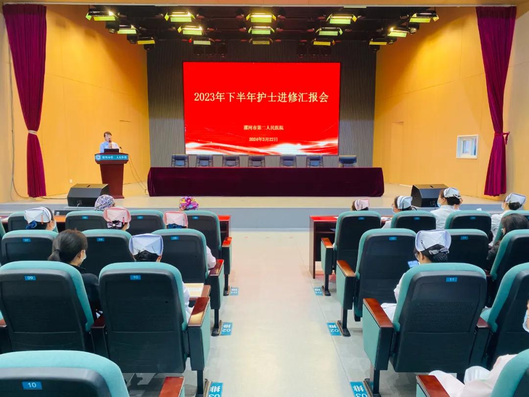 為進一步激發(fā)護理人員學(xué)習(xí)工作積極性,分享學(xué)習(xí)經(jīng)驗,展示工作成效,有效推動護理??瓢l(fā)展,3月22日,市二院在十二樓學(xué)術(shù)報告廳舉辦了2023年下半年護士進修匯報會。副院長郭長根出席、各科室護士長、不值班護士約150人參加了會議。