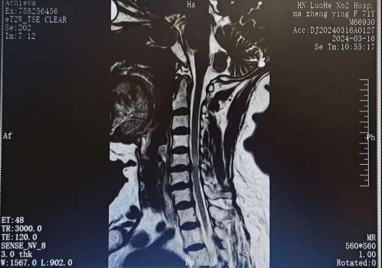 近日,70歲的馬阿姨,因摔傷后出現(xiàn)持續(xù)性頸部疼痛伴右側(cè)肢體無(wú)力、麻痛,影響日常生活。于是來(lái)到市二院神經(jīng)外科就診,經(jīng)檢查發(fā)現(xiàn):頸椎MR示:頸3/4、4/5、5/6、6/7椎間盤變性突出(中央型)并繼發(fā)性椎管變窄,頸椎退行性改變,頸5椎體水平頸髓水腫。神經(jīng)外科副主任劉沛濤根據(jù)患者癥狀、體征、影像學(xué)三者結(jié)合診斷為“脊髓型頸椎病”,考慮到患者癥狀逐漸加重、保守治療效果不佳等情況,建議盡快手術(shù)治療。