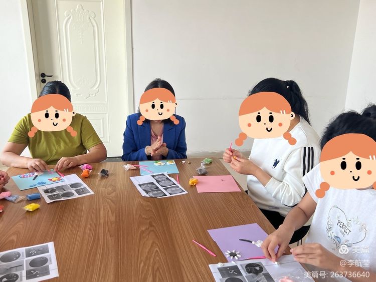 輔導(dǎo)員帶領(lǐng)同伴們一起完成關(guān)于“勞動(dòng)最光榮”的主題粘土畫。