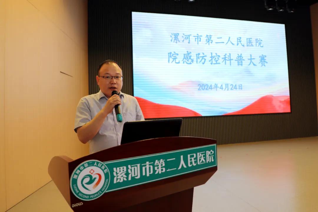 4月24日下午,市二院在12樓學(xué)術(shù)報(bào)告廳舉辦“醫(yī)療安全,感控先行”科普大賽,副院長謝彩玲、副院長張曉東、工會主席李世學(xué)及各科室代表200余人參加了活動(dòng)。