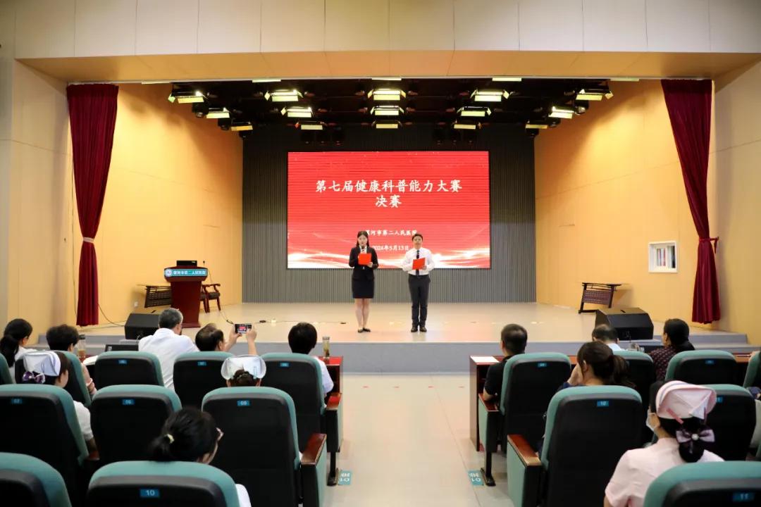 為貫徹落實(shí)“健康中國”戰(zhàn)略,不斷提高全院職工健康科普宣講能力,進(jìn)一步向社會公眾傳播正確科學(xué)的健康生活方式及防病治病理念,5月13日下午,市二院在12樓學(xué)術(shù)報告廳舉辦第七屆健康科普能力大賽。黨委書記魏松、院長王瑾及班子成員、部分中層干部、臨床科室職工代表100余人參加了此次活動。