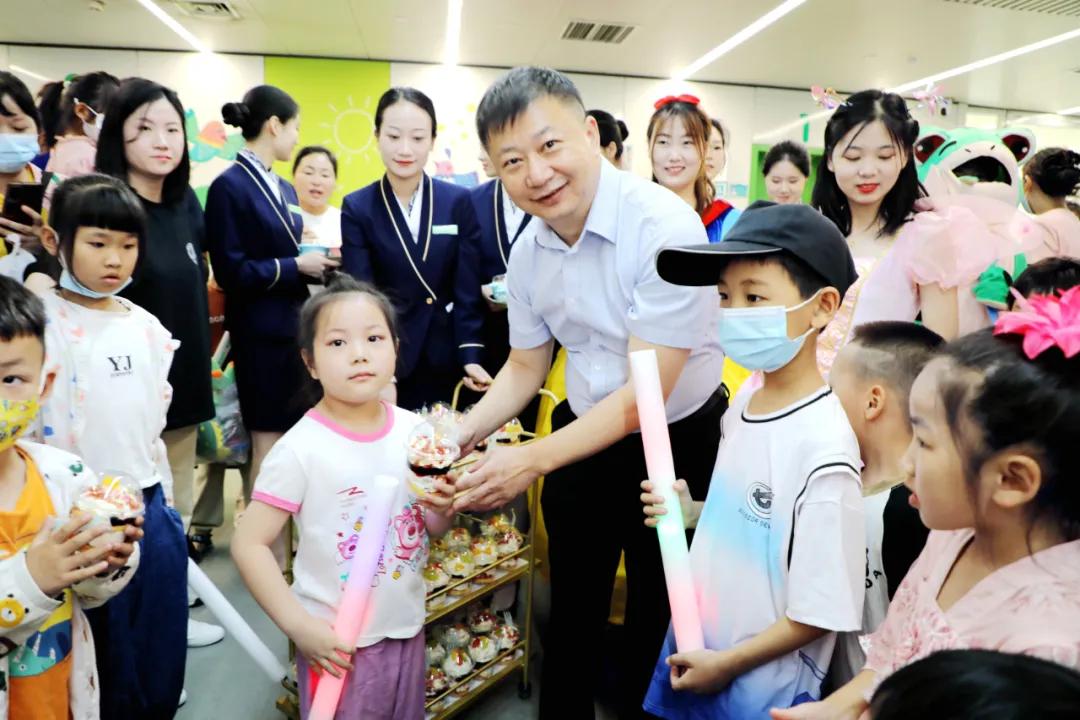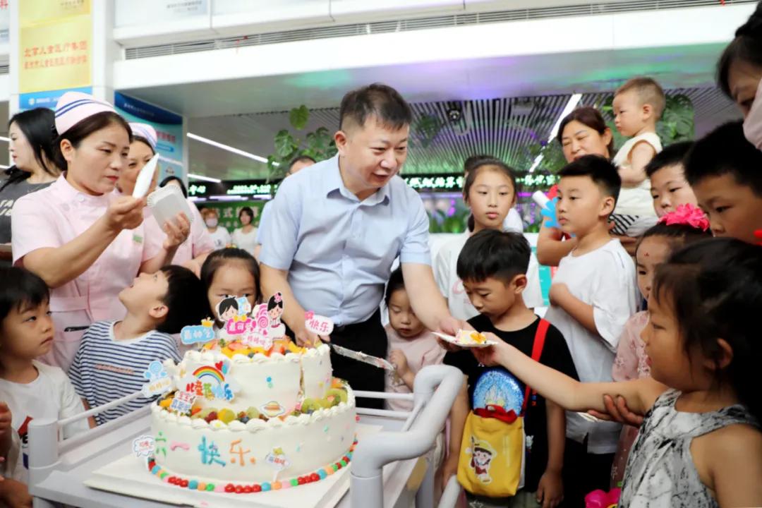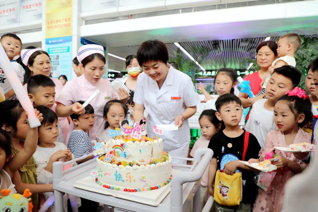在門診大廳,黨委書記魏松、院長王瑾與兒科專家、護(hù)士長、孩子們一起切下節(jié)日蛋糕,并代表全院醫(yī)護(hù)人員對孩子們表示衷心的祝福,希望孩子們健康快樂成長?,F(xiàn)場,醫(yī)護(hù)人員化身白雪公主、花仙子、小黃人、網(wǎng)紅青蛙與小朋友們熱情互動,友好交流,派發(fā)精心準(zhǔn)備的節(jié)日禮物。