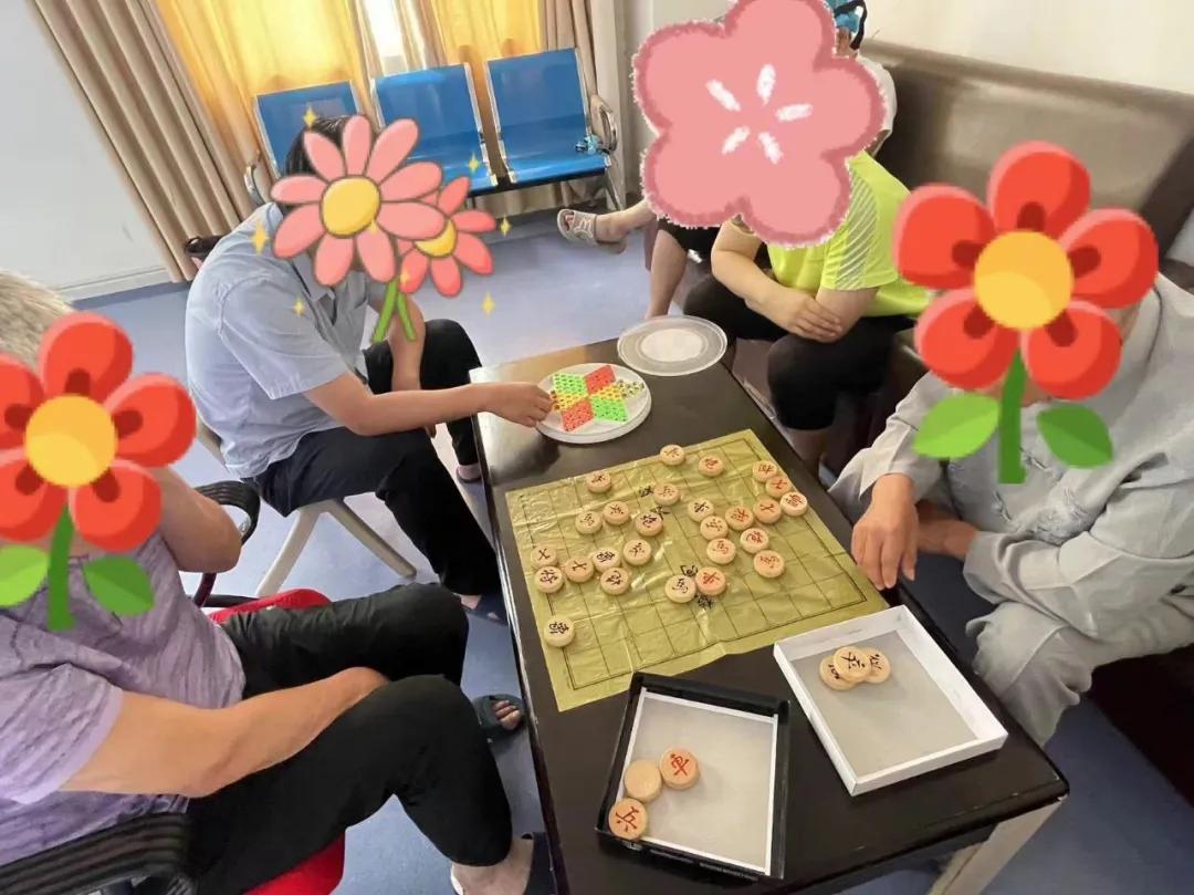 走進活動室我們首先看到的是有的患者手中拿著筆,在信紙上認真地傾訴著自己的內(nèi)心世界,意為發(fā)泄,也是與自己的一次和解。有的患者則在醫(yī)務(wù)人員的指導下,制作手工藝品,從一開始的笨拙生疏,到漸漸的熟練流暢,他們的作品從無到有,從簡到繁,無不展現(xiàn)出獨特的創(chuàng)意和個性。更有兩兩對坐的患者在棋局上戰(zhàn)得酣暢淋漓,快意人生。對于愛運動的患者,我們工娛護士則跟著視頻課程帶領(lǐng)大家揮灑汗水,恣意瀟灑。