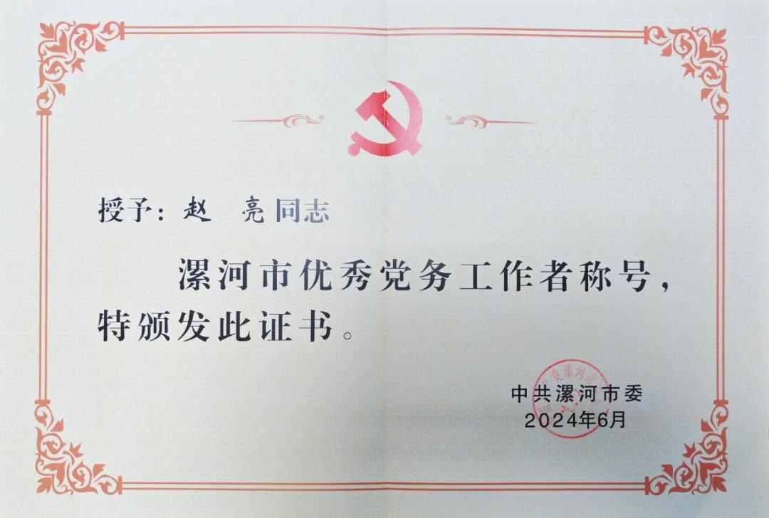 6月27日,全市“兩優(yōu)一先”表彰大會(huì)召開(kāi),市二院趙亮榮獲“漯河市優(yōu)秀黨務(wù)工作者”榮譽(yù)稱號(hào)。