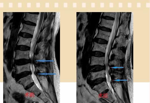 手術采用三個微創(chuàng)小切口,兩個節(jié)段減壓手術時間2.5小時,出血50ml。術后2天腰圍保護下床活動,術后5天順利出院。