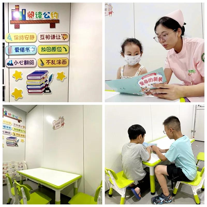 根據(jù)孩子年齡不同,放置了適合各年齡段的圖書種類,添置看圖識字語音掛圖,為治療結(jié)束的孩子提供休閑娛樂的區(qū)域,減少孩子看手機及電視的時間。