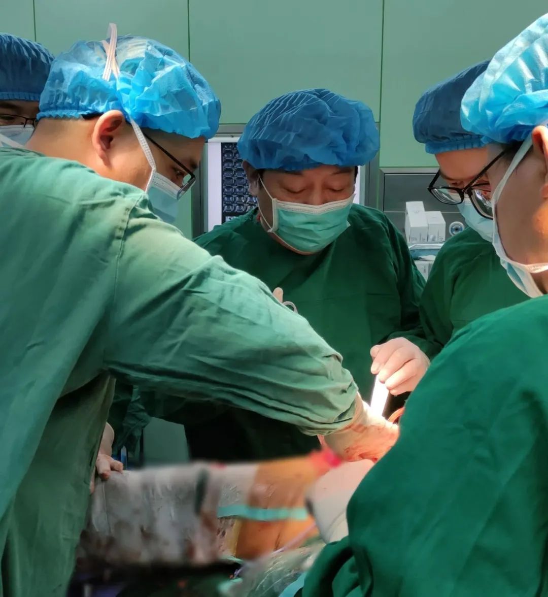 手術(shù)方案確定后,緊急啟動手術(shù)室,外科團(tuán)隊(duì)首先對患者的腹腔內(nèi)損傷進(jìn)行了探查和止血處理,術(shù)中診斷為創(chuàng)傷性小腸破裂、創(chuàng)傷性結(jié)腸破裂、腸系膜破裂傷、腹腔擠壓傷、腹膜炎等,并對患者進(jìn)行橫結(jié)腸部分切除術(shù)、小腸破裂修補(bǔ)術(shù)、結(jié)腸造口術(shù)等。外科手術(shù)結(jié)束后,中醫(yī)骨傷科團(tuán)隊(duì)緊急接臺,甄相周主任及楊冬松主任對患者進(jìn)行了左脛腓骨開放性骨折清創(chuàng)術(shù)、脛骨外固定術(shù)、右下肢清創(chuàng)縫合術(shù)。整個(gè)手術(shù)過程歷時(shí)數(shù)小時(shí),醫(yī)護(hù)人員始終保持著高度的專注和緊張,確保手術(shù)順利進(jìn)行。術(shù)后,該患者轉(zhuǎn)入EICU進(jìn)行密切監(jiān)護(hù)和治療。
