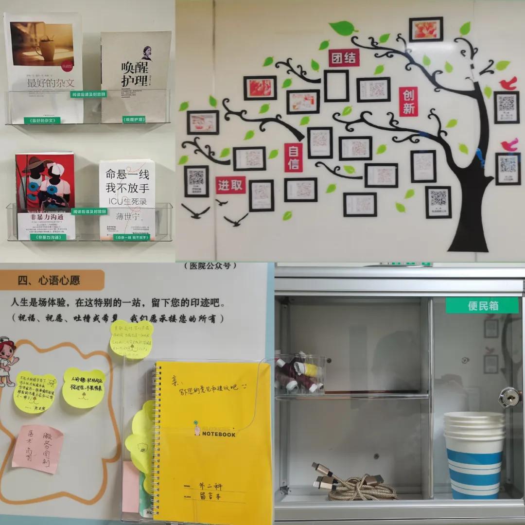 在科室護(hù)理團(tuán)隊(duì)中,始終以患者為中心,提供個(gè)性化、人性化的護(hù)理服務(wù)。從患者入院的那一刻起,就為患者提供心理疏導(dǎo)、術(shù)前準(zhǔn)備、術(shù)后恢復(fù)等全方位的護(hù)理和健康指導(dǎo),從每個(gè)病房門后懸掛的《病房“小助理”》、增設(shè)便民服務(wù)箱、健康教育專欄、趣味讀書專欄、可移動(dòng)輸液架到護(hù)士上門延伸服務(wù)、與患者之間的心語心愿留言板等,讓每位患者與醫(yī)務(wù)人員的關(guān)系更加親密,讓每位患者都能感受到家的溫暖。