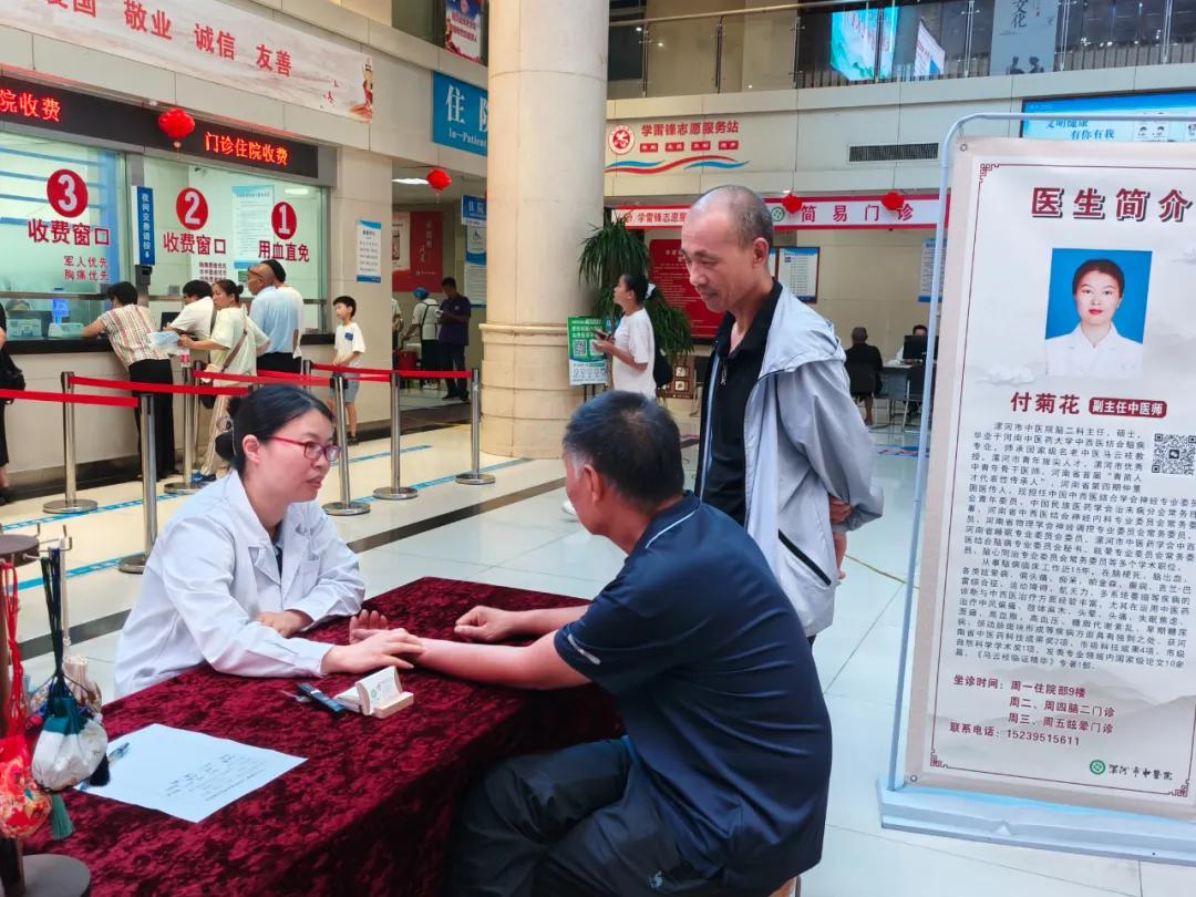 健康講座過后,腦二科主任付菊花為群眾進行一對一的義診服務,給予把脈問診、開具健康處方及健康指導;中醫(yī)骨干護士為群眾講解中醫(yī)養(yǎng)生知識,給予火龍罐、艾灸等中醫(yī)療法體驗;中藥師給予膳食指導和養(yǎng)生茶飲推薦,群眾表示很實用。
