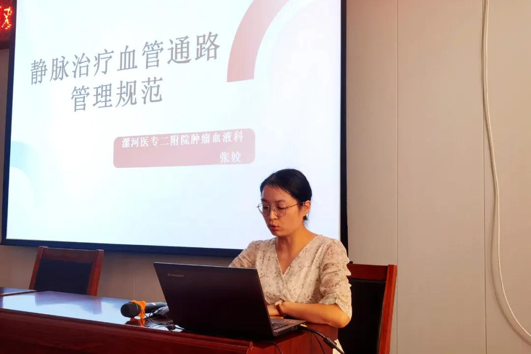 張姣主管護師以《靜脈治療血管通路管理規(guī)范》為主題,分享了靜脈治療常用的血管通路的選擇、評估,以及導(dǎo)管維護相關(guān)專家共識的解讀內(nèi)容。