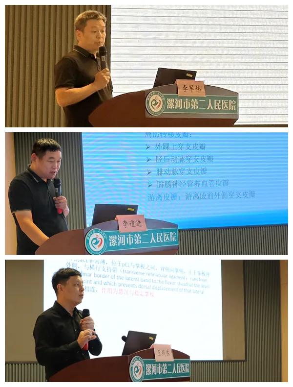 在學(xué)術(shù)交流環(huán)節(jié),河南省人民醫(yī)院手足顯微和創(chuàng)面修復(fù)外科主任謝振軍教授就“慢性創(chuàng)面的皮瓣修復(fù)”,市骨科醫(yī)院骨四科主任李俊明就“穿支皮瓣聯(lián)合Masquelet技術(shù)治療四肢骨及皮膚軟組織缺損”,市二院顯微外科主任沈衛(wèi)軍就“幾種常見(jiàn)的肌腱自發(fā)性離斷”,市中心醫(yī)院創(chuàng)傷骨科主任李軍偉就“超顯微技術(shù)在阿爾茨海默病中的應(yīng)用進(jìn)展”,市骨科醫(yī)院骨四科副主任醫(yī)師李道選就“游離股前外側(cè)穿支皮瓣修復(fù)足踝部皮膚缺損”,市二院顯微外科副主任醫(yī)師王戰(zhàn)磊就“手部側(cè)副韌帶損傷的診療方法”做了專(zhuān)題講座及分享交流。