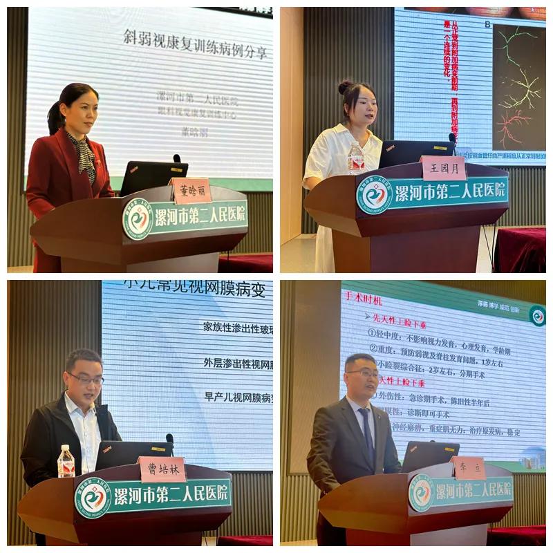 市二院董晗麗視覺視訓(xùn)師就《斜弱視康復(fù)訓(xùn)練病例分享》進行了交流;市中心醫(yī)院王園月醫(yī)生對《早產(chǎn)兒視網(wǎng)膜病變的規(guī)范化診療及隨訪》進行了解讀;市醫(yī)專二附醫(yī)院曹培林醫(yī)生分享了《小兒常見視網(wǎng)膜相關(guān)病變的診治經(jīng)驗》;市二院眼科主任李立分享了《上瞼下垂的診斷及治療》。