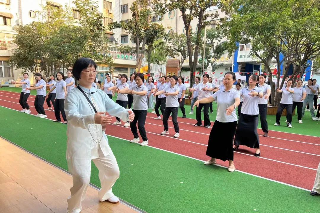 張瑞護士長現(xiàn)場教授大家健身氣功“八段錦”。還詳細介紹了八段錦的重要性以及練習要點,并將動作進行分解示范,帶領大家靜心感受八段錦修身養(yǎng)性、陶冶情操的運動內涵。八段錦簡單易學,適用人群范圍廣,經常練習八段錦不僅預防頸椎病,還能夠幫助調氣和血、舒筋活絡、調節(jié)機體各個臟腑機能。老師們熱情高漲,反復練習,仔細揣摩動作細節(jié)。