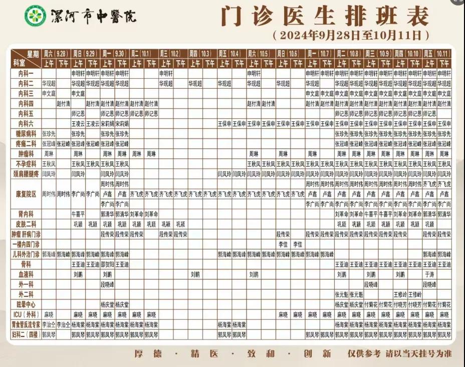 漯河市中醫(yī)院國慶節(jié)期間門診醫(yī)生排班和就醫(yī)指南來啦~