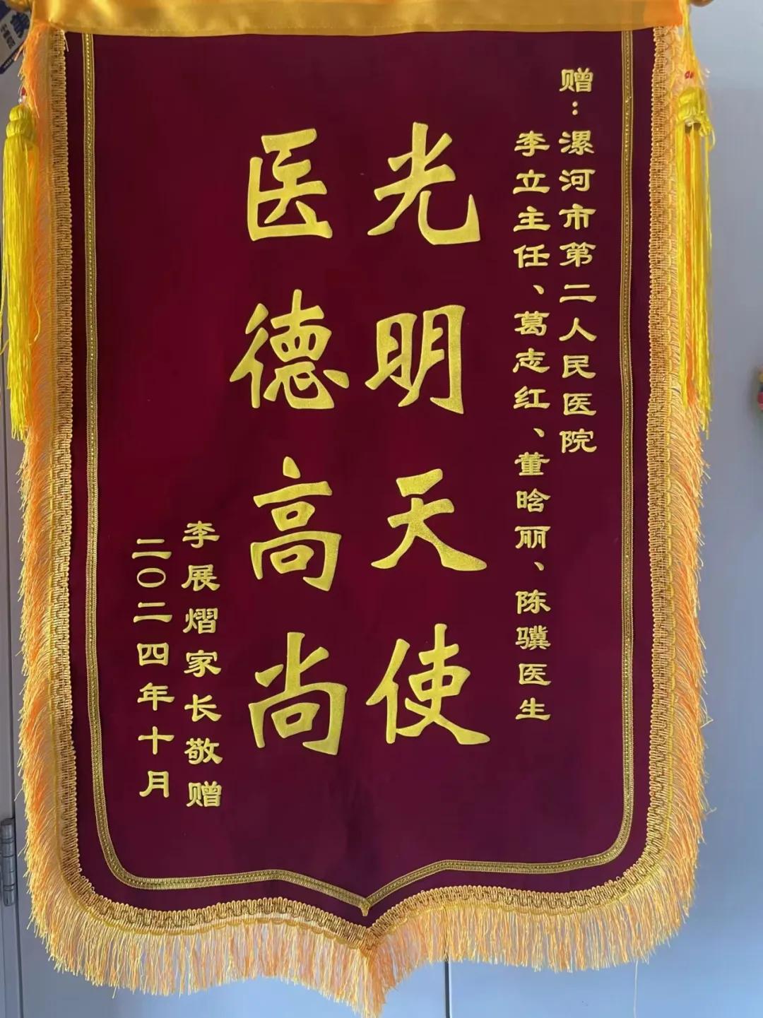 患兒的家長(zhǎng)深感激動(dòng)與欣慰,恰逢10月2日,也是患兒五周歲的生日,家長(zhǎng)特意選擇這一具有紀(jì)念意義的日子,送來(lái)錦旗,以表達(dá)他們對(duì)眼科醫(yī)療團(tuán)隊(duì)的深切感激之情。