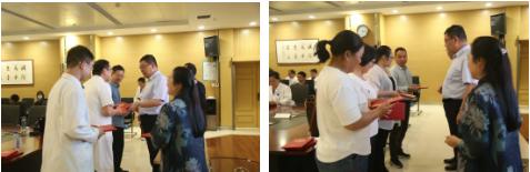 結(jié)業(yè)儀式上,漯河市骨科醫(yī)院中醫(yī)科主任、第一屆中醫(yī)經(jīng)典傳承培訓(xùn)班班主任原文濤就培訓(xùn)班開展情況進行工作匯報。他表示,在醫(yī)院黨委的正確領(lǐng)導(dǎo)和大力支持下,2023年2月23日,漯河醫(yī)專二附院第一屆中醫(yī)經(jīng)典傳承培訓(xùn)班正式開班。開班以來,除雨雪天氣等特殊原因外,全體學員堅持每周一次、每次90分鐘的現(xiàn)場授課??紤]到學員工作繁忙和來院距離較遠等因素,2024年春節(jié)過后,培訓(xùn)班改為每周一次、每次90分鐘的線上授課。第一屆培訓(xùn)班先后系統(tǒng)串講了《傷寒論》和《金匱要略》等中醫(yī)經(jīng)典著作,并就麻黃類方、桂枝類方、柴胡類方等常用方證進行了集中講解,同時結(jié)合臨床實際案例,深刻闡述了經(jīng)方臨床應(yīng)用方法和技巧。截止2024年9月底,第一屆中醫(yī)經(jīng)典傳承培訓(xùn)班完成了既定的學習計劃和目標,順利結(jié)業(yè)。