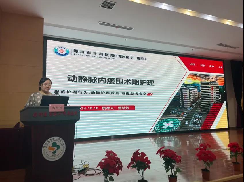 精心的圍手術(shù)期護理,可以減少手術(shù)并發(fā)癥,提高手術(shù)成功率,曹慧芳主任以《動靜脈內(nèi)瘺圍術(shù)期護理》為題詳細闡述了患者評估與準(zhǔn)備、手術(shù)過程與護理配合、術(shù)后護理與觀察、藥物治療與護理、心理護理等內(nèi)容。