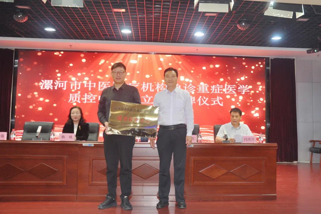 漯河市衛(wèi)健委四級(jí)調(diào)研員黃紅亮宣讀《關(guān)于變更市級(jí)中醫(yī)醫(yī)療機(jī)構(gòu)急診重癥醫(yī)學(xué)質(zhì)量控制中心主任、副主任、專職秘書(shū)名單的通知》并現(xiàn)場(chǎng)授牌。