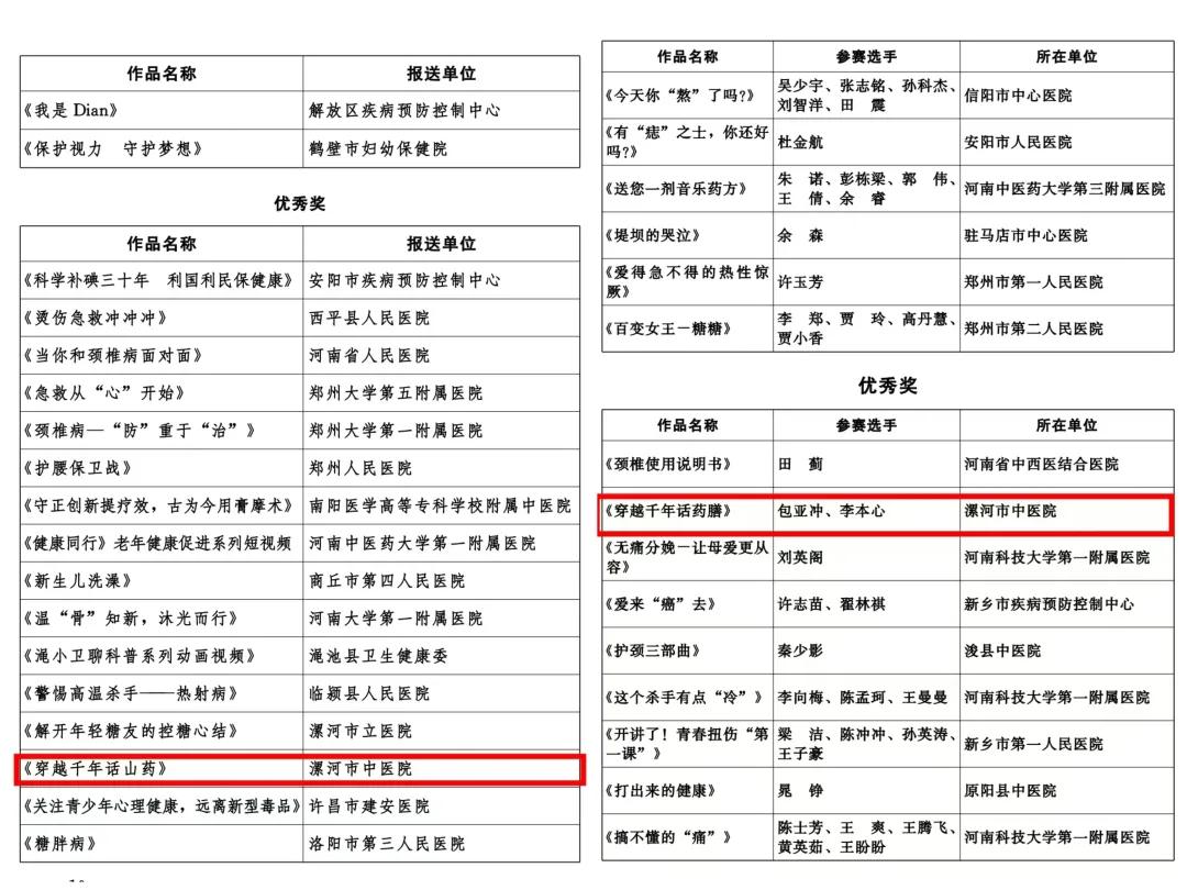 自3月28日以來,經(jīng)過初賽、分主題決賽、總決賽的激烈角逐,漯河市中醫(yī)院手術(shù)室主管護(hù)師包亞沖和外一科主治中醫(yī)師李本心共同創(chuàng)作的科普作品《穿越千年話藥膳》榮獲第六屆河南省健康科普技能大賽表演類優(yōu)秀獎,包亞沖創(chuàng)作的《穿越千年話山藥》榮獲第六屆河南省健康科普技能大賽科普作品視頻類優(yōu)秀獎。