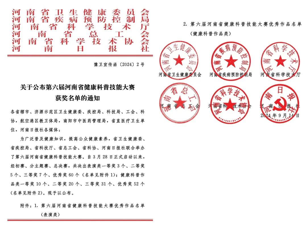 第六屆河南省健康科普技能大賽,漯河市中醫(yī)院包亞沖斬獲多項榮譽