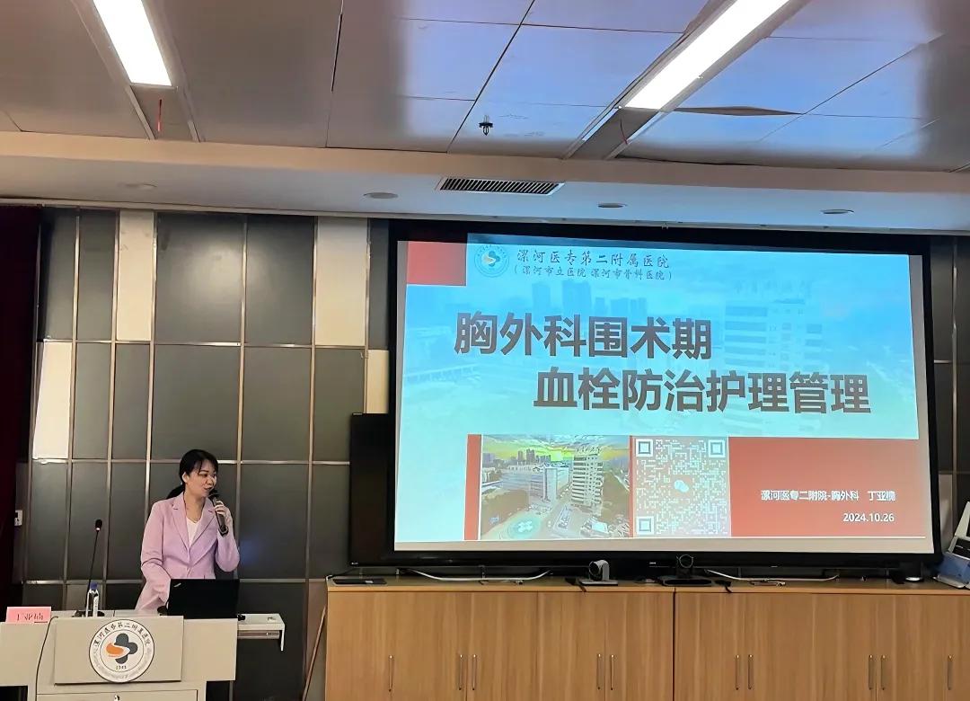 丁亞楠護士長以《胸外科圍術(shù)期血栓防治護理管理》為題,講述胸外科血栓防治護理管理是確?;颊邍g(shù)期安全的重要環(huán)節(jié),需要貫穿患者術(shù)前、術(shù)中、術(shù)后及出院后的全過程,通過全面的評估、個性化的預(yù)防措施、密切的病情觀察和有效的抗凝治療手段,降低血栓形成的風(fēng)險,確?;颊叩陌踩?。醫(yī)護不分家,醫(yī)療團隊及護理團隊的共同發(fā)展才能促進專科建設(shè)的發(fā)展,丁亞楠護士長促使胸外護理團隊的專科建設(shè),對VTE的防治管理規(guī)范管理,為胸外的發(fā)展提供助力。