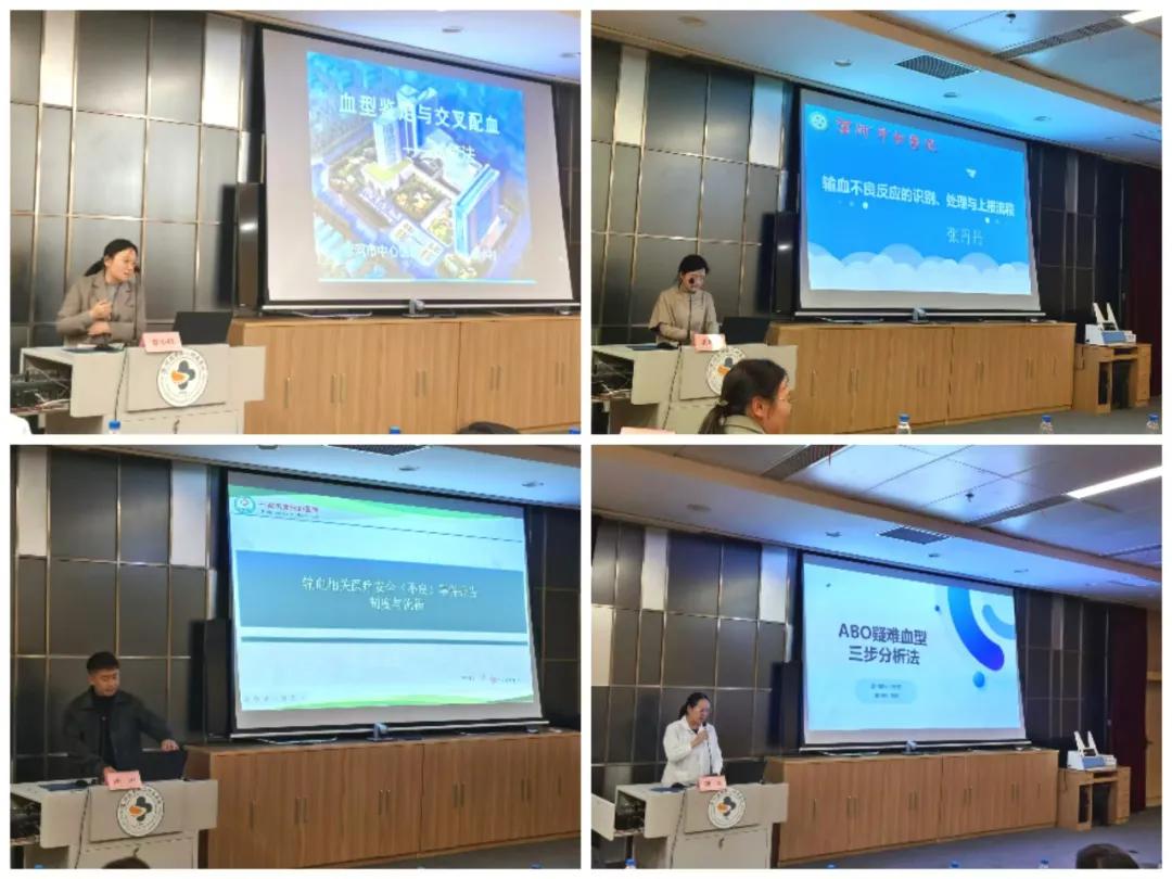 第二部分是專題培訓(xùn)會(huì),首先由漯河市中心醫(yī)院賈小村老師為大家分享了《血型鑒定與交叉配血》,其次,由漯河市中醫(yī)院張丹丹老師為大家?guī)怼遁斞涣挤磻?yīng)的識(shí)別、處理與上報(bào)》,緊接著,臨潁縣人民醫(yī)院陳陽主任給大家匯報(bào)了《輸血相關(guān)不良事件的報(bào)告》,最后,漯河醫(yī)專二附院劉歡老師給大家?guī)砹恕禔BO疑難血型三步分析法》。這些老師從實(shí)際工作出發(fā),具體分析了輸血工作中可能遇到的問題及注意事項(xiàng),無私分享了寶貴的工作經(jīng)驗(yàn),會(huì)議在掌聲中圓滿結(jié)束。