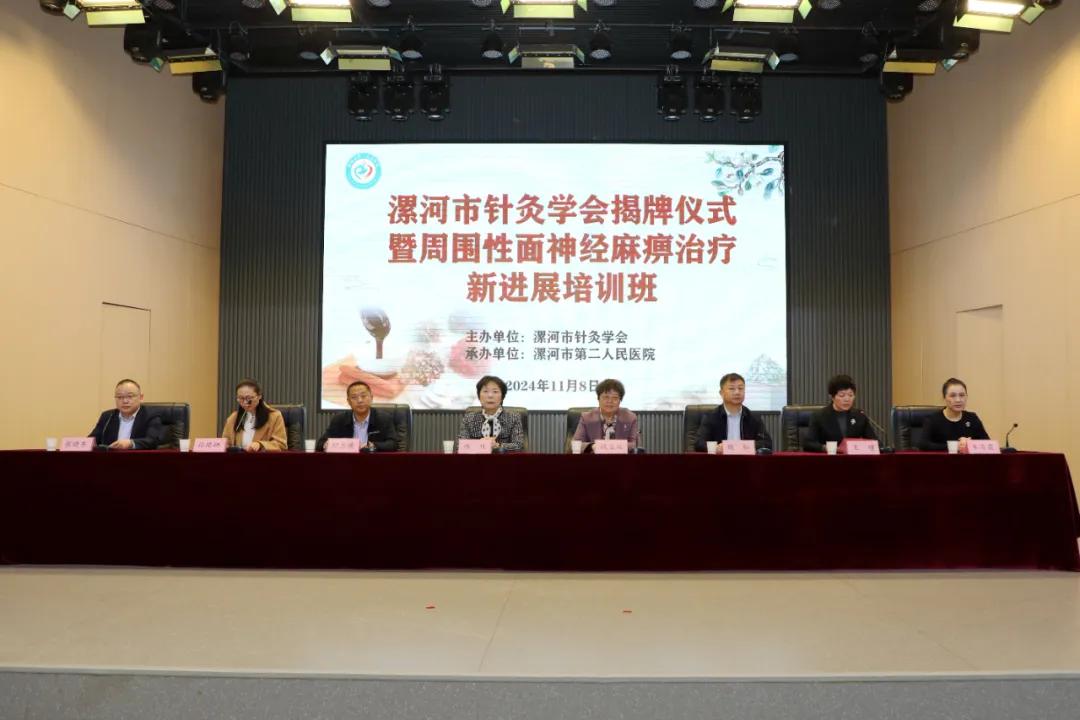 11月8日,舉行了漯河市針灸學會揭牌儀式暨周圍性面神經(jīng)麻痹治療新進展培訓班。河南省針灸學會會長路玫教授、副會長錢寶延教授,市衛(wèi)健委副主任胡忠德、中醫(yī)科科長孫艷娜,市二院黨委書記魏松、院長王瑾及班子成員,市針灸學會會長、市二院中醫(yī)針灸科主任朱青霞等參加揭牌儀式。儀式由副院長張曉東主持。