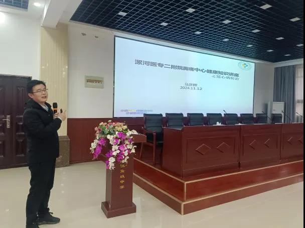 講座現(xiàn)場(chǎng),馬彥輝為該校教職工科普心血管疾病相關(guān)知識(shí),從冠心病的概況、癥狀與性質(zhì)、急性心肌梗死的形成以及ACS的急救措施等內(nèi)容進(jìn)行了詳細(xì)講解。針對(duì)心血管疾病的危險(xiǎn)因素,重點(diǎn)與在場(chǎng)人員分享了冠心病的預(yù)防措施,介紹了飲食健康、控制體重、定期運(yùn)動(dòng)、減輕生活壓力及戒煙限酒等對(duì)于降低心血管疾病風(fēng)險(xiǎn)的重要性。