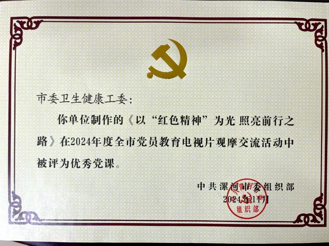 近日,中共漯河市委組織部開展的2024年度全市黨員教育電視片觀摩交流活動(dòng)獲獎(jiǎng)名單新鮮出爐,市二院藥學(xué)黨支部報(bào)送的微視頻《以“紅色精神”為光 照亮前行之路》被評(píng)為優(yōu)秀黨課。