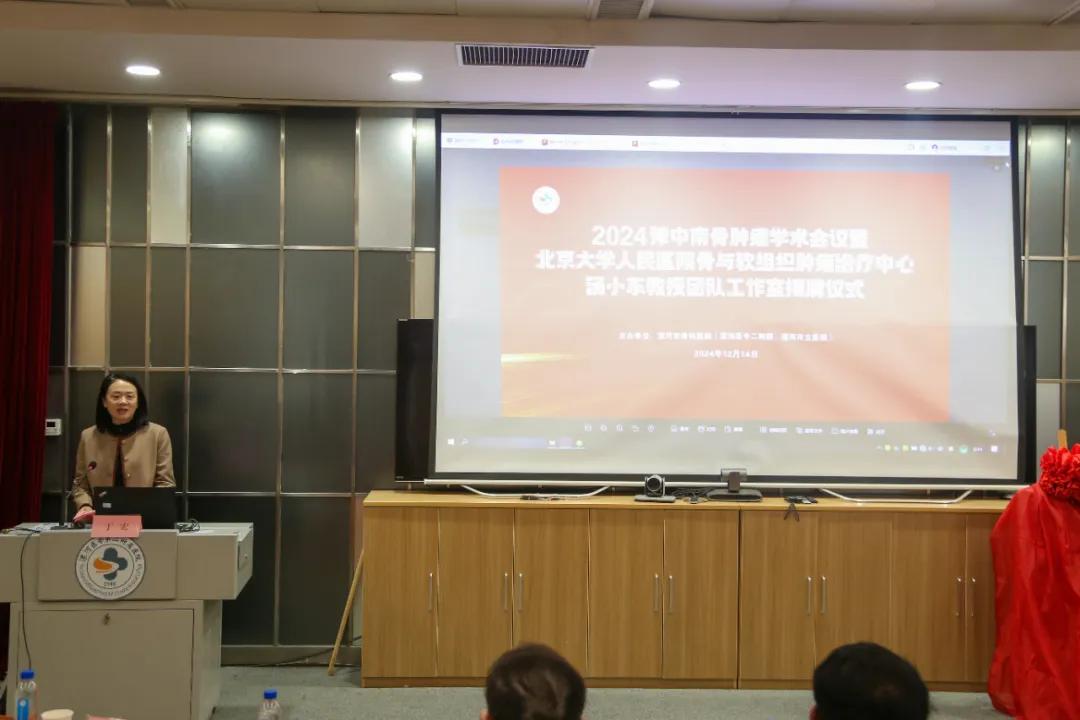 市衛(wèi)健委副主任于宏在致辭中代表市衛(wèi)健委向出席會議的各位專家教授表示熱烈的歡迎。她指出,骨腫瘤學(xué)科雖然在骨科領(lǐng)域中相對小眾,涉及的多為罕見病或少見病,發(fā)病率較低,病理類型復(fù)雜,治療難度大,但其在醫(yī)學(xué)中的重要性不容忽視,攻克骨腫瘤領(lǐng)域,依然任重而道遠。她希望以北京大學(xué)人民醫(yī)院湯小東教授團隊工作室揭牌為契機,匯聚眾多業(yè)內(nèi)精英,搭建廣泛交流、深度研討的平臺,共同推動豫中南地區(qū)在骨腫瘤相關(guān)領(lǐng)域的診療水平進一步提升。