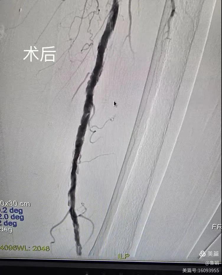 據(jù)悉,該患者,女,73歲,下肢動脈硬化閉塞癥,“以靜息痛,間歇性跛行”入院,CTA評估:股淺動脈,腘動脈間斷性多段重度狹窄,外二科血管外科團隊根據(jù)患者病情,結(jié)合檢查結(jié)果,經(jīng)過科室會診后,決定對該病人行介入治療。手術由周創(chuàng)業(yè)副主任與北大一院血管外科專家郭宏杰教授聯(lián)合開展,對股淺動脈,腘動脈重度閉塞段行血管開通+藥涂球囊擴張成形,術后狹窄明顯緩解,血流恢復!
