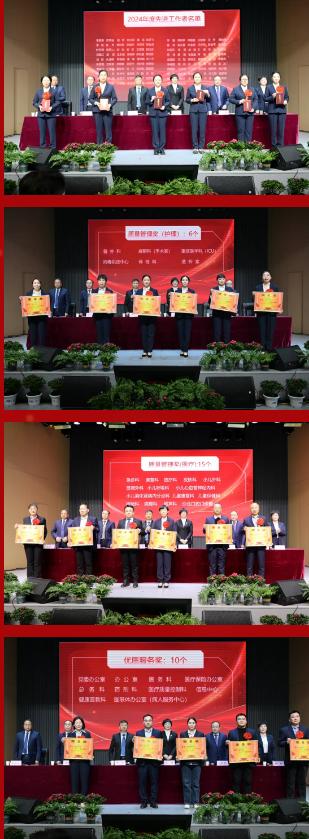 大會對2024年表現(xiàn)優(yōu)秀的集體和個人進行了隆重表彰,依次頒發(fā)了“年度工作先進工作者”“護理質(zhì)量管理獎”“醫(yī)療質(zhì)量管理獎”“優(yōu)質(zhì)服務(wù)獎”“目標(biāo)管理先進科室”和“特殊貢獻(xiàn)獎”。獲獎代表們臉上洋溢著自豪的笑容依次上臺領(lǐng)獎,臺下的陣陣掌聲,更是獻(xiàn)給榜樣的最高禮贊。