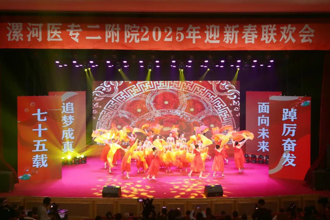 為慶祝漯河醫(yī)專二附院(漯河市骨科醫(yī)院、漯河市立醫(yī)院)建院七十五周年,1月21日,漯河醫(yī)專二附院2025年迎新春聯(lián)歡會在漯河市科教文化藝術(shù)中心大劇院隆重舉行。漯河醫(yī)學(xué)高等??茖W(xué)校校長張祎捷,市衛(wèi)生健康委副主任于宏,市醫(yī)保局副局長于懷江,漯河醫(yī)專黨委副書記邊曉峰,市科協(xié)副主席臧明濤,市總工會四級調(diào)研員李敏,漯河醫(yī)專紀(jì)委書記王蕾,漯河醫(yī)專副校長張福華、馬永超,漯河醫(yī)專二附院黨委書記柴運(yùn)洪,漯河醫(yī)專二附院院長王齊超,漯河醫(yī)專黨辦主任楊曉宇,漯河醫(yī)專行政辦主任申耀強(qiáng),漯河醫(yī)專團(tuán)委書記周沛,市衛(wèi)健委醫(yī)政科科長胡艷麗,市總工會文教衛(wèi)工會主任谷賀衛(wèi),郾城區(qū)龍塔街道辦事處主任李瑩,郾城區(qū)巴山路居委會書記王梅芝,郾城區(qū)伊坪小學(xué)校長徐偉濤等出席。
