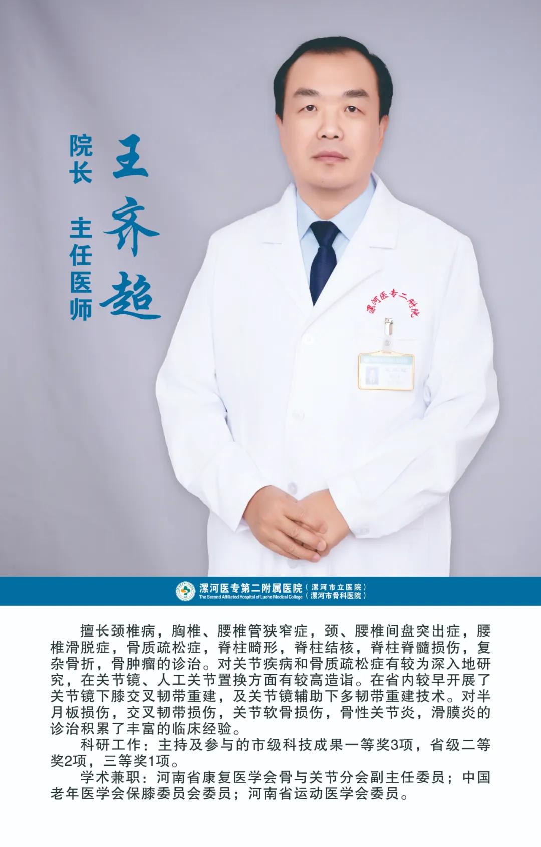 骨醫(yī)名家 | 漯河醫(yī)專二附院(漯河市骨科醫(yī)院)院長、骨科專家 — 王齊超