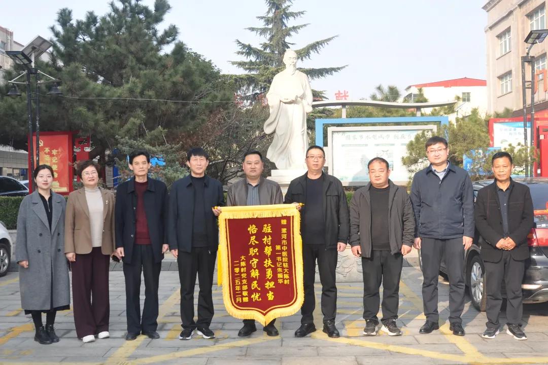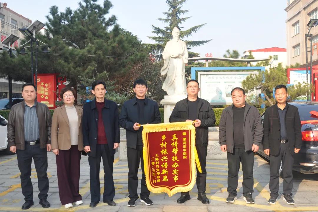 2月28日上午,源匯區(qū)大劉鎮(zhèn)黨委書記郭嘉琦帶領(lǐng)鎮(zhèn)干部同大陳村“兩委”干部一行來到漯河市中醫(yī)院,將“深情幫扶辦實(shí)事,鄉(xiāng)村振興譜新篇 ”和“駐村幫扶勇?lián)?dāng),恪盡職守解民憂”兩面錦旗分別送到漯河市中醫(yī)院黨委副書記、副院長(zhǎng)張文吉和醫(yī)院派駐大陳村“第一”書記朱振華的手中,以此感謝漯河市中醫(yī)院兩年多來對(duì)大劉鎮(zhèn)大陳村脫貧攻堅(jiān)以及鄉(xiāng)村振興工作的傾情幫扶和大力支持,院黨委副書記、副院長(zhǎng)張文吉帶領(lǐng)相關(guān)科室負(fù)責(zé)人接待并召開座談會(huì)。