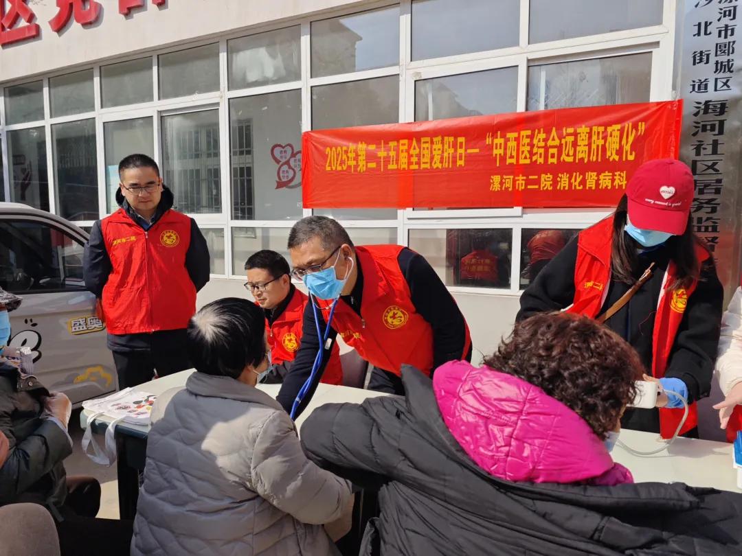 3月18日是第25個“全國愛肝日”,今年全國愛肝日的主題是:中西醫(yī)結(jié)合,逆轉(zhuǎn)肝硬化。當天,市二院組織消化腎病科專家、志愿者到海河小區(qū)開展義診宣傳活動,旨在提高居民對肝硬化、慢性病毒性肝炎、酒精性肝病、代謝相關(guān)脂肪性肝病等常見肝臟疾病的認識,普及肝硬化的防治知識,倡議改善不良生活習慣、主動篩查、規(guī)范治療、定期隨訪,從而減少肝硬化的發(fā)生。