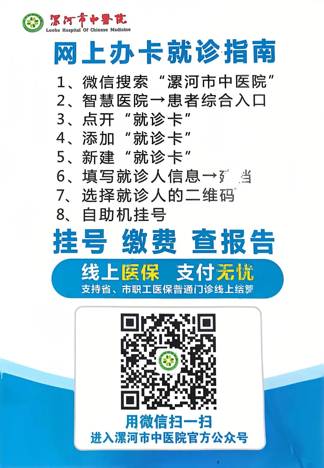 2、預(yù)約掛號(hào):子女或親屬可幫助老年人通過醫(yī)院微信公眾號(hào)(如“漯河市中醫(yī)院公眾號(hào)”)或者支付寶小程序線上預(yù)約掛號(hào)。