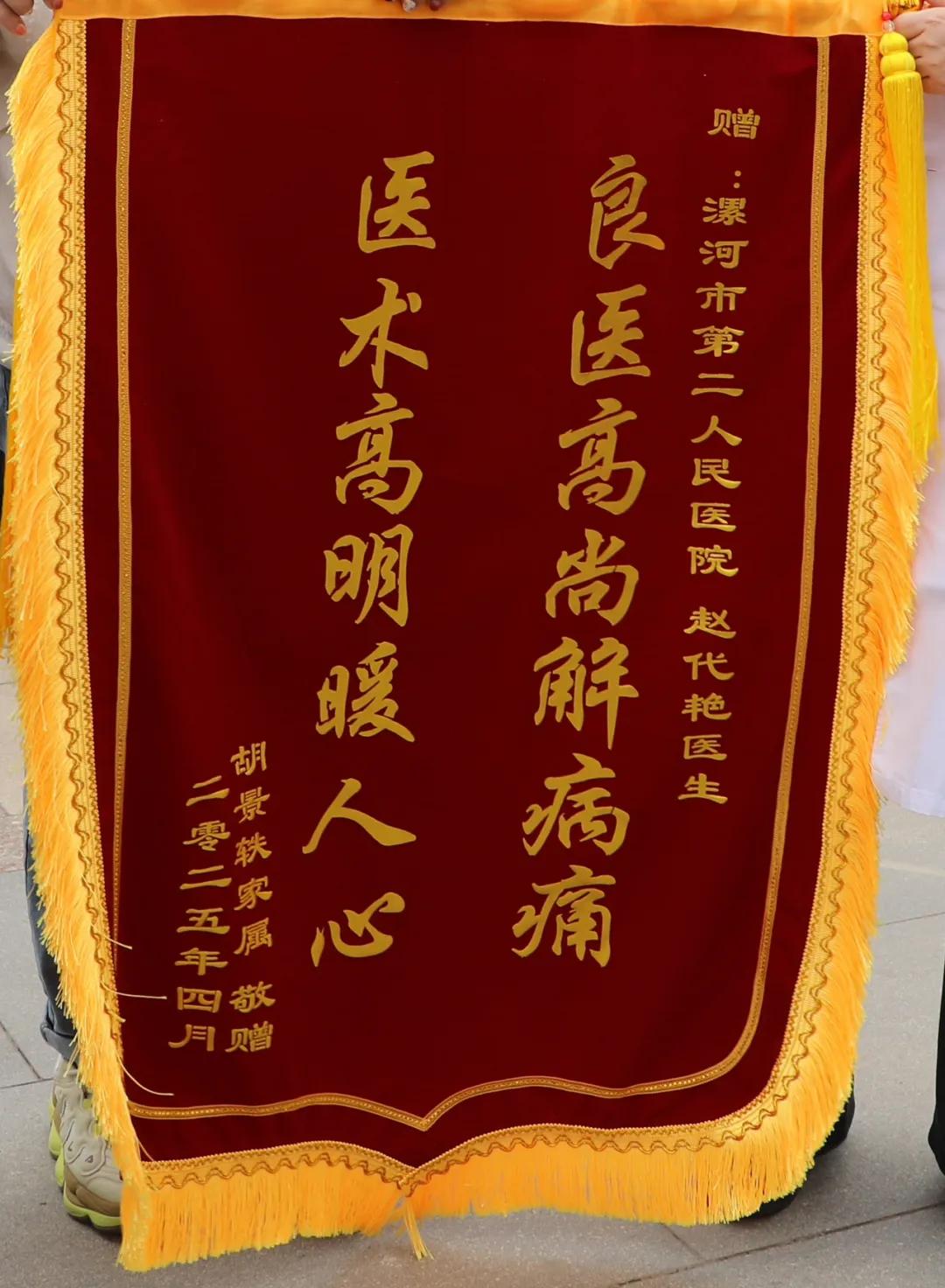 一名家住駐馬店市西平縣的患兒家長(zhǎng)帶著孩子專程來(lái)到活動(dòng)現(xiàn)場(chǎng),找到市二院小兒心血管神經(jīng)血液科主任醫(yī)師趙代艷,送上一面寫(xiě)有“良醫(yī)高尚解病痛 醫(yī)術(shù)高明暖人心”的錦旗,以表達(dá)全家的感激之情。“近兩個(gè)月,每周我都帶孩子前往市二院復(fù)查,趙代艷醫(yī)生細(xì)致入微的關(guān)懷與耐心,都令我深深感動(dòng)。每一次復(fù)查,她都不厭其煩地叮囑各項(xiàng)注意事項(xiàng),從日常飲食到生活作息,面面俱到。”孩子家長(zhǎng)感慨地說(shuō)道。