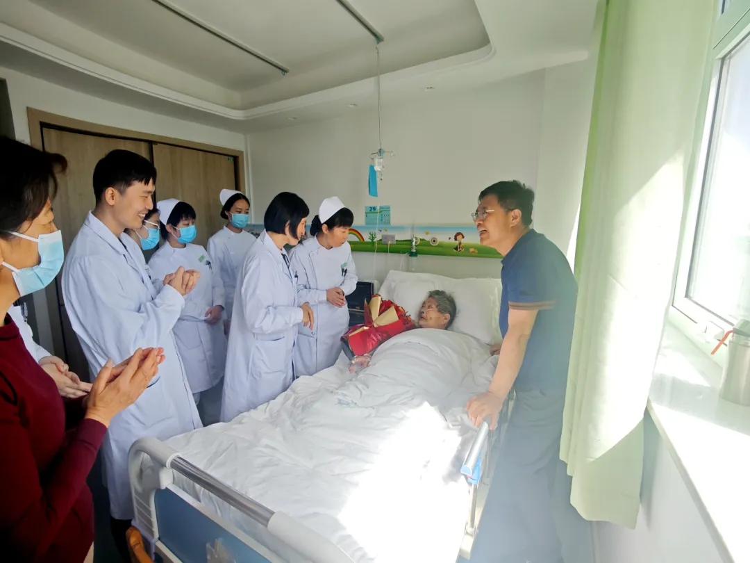 在市二院醫(yī)療救治的第一線,不僅有嚴謹專業(yè)的診療,更有溫暖真摯的關(guān)懷。4月13日上午,市二院呼吸與內(nèi)分泌科病房里傳來陣陣歡聲笑語,科室醫(yī)護人員為90歲的秦阿姨精心準備了一場生日會,用愛與陪伴為老人送上最特別的祝福。