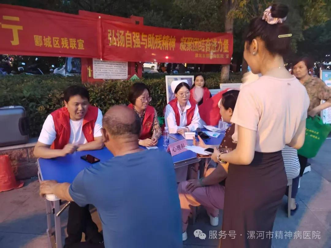 在第35個(gè)“全國(guó)助殘日”來(lái)臨之際,漯河市精神病醫(yī)院積極響應(yīng)號(hào)召于2025年5月14日在郾城區(qū)黃河廣場(chǎng)開展主題為“弘揚(yáng)自強(qiáng)與助殘精神,凝聚團(tuán)結(jié)奮進(jìn)力量”的義診活動(dòng),此次活動(dòng)旨在為殘障人士及市民提供專業(yè)醫(yī)療支持,同時(shí)倡導(dǎo)全社會(huì)形成扶殘助殘的良好風(fēng)尚。