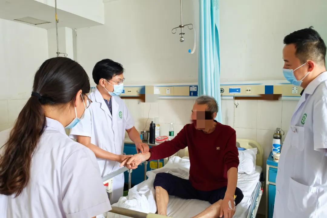 首先,李華華教授認(rèn)真聽(tīng)取主管醫(yī)師針對(duì)疑難病例的病歷匯報(bào),查閱患者檢查資料,結(jié)合其臨床經(jīng)驗(yàn),就治療中出現(xiàn)的疑難點(diǎn)提出下一步合理化診療建議。隨后他來(lái)到病房,系統(tǒng)詢問(wèn)患者此階段的身體狀況、體力及飲食情況,結(jié)合既往治療經(jīng)過(guò),中醫(yī)四診合參,及時(shí)調(diào)整中西醫(yī)治療方案,為患者后續(xù)康復(fù)奠定基礎(chǔ)。