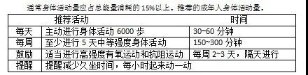 3.堅(jiān)持日常身體活動(dòng),每周至少進(jìn)行5天中等強(qiáng)度身體活動(dòng),累計(jì)150分鐘以上;主動(dòng)身體活動(dòng)最好每天6000步。