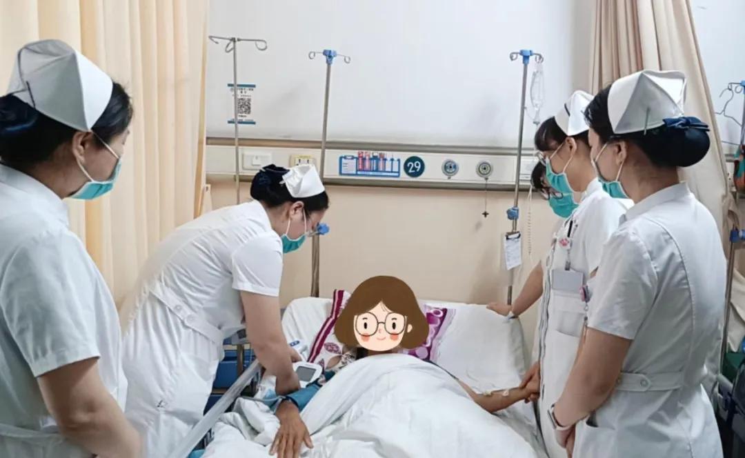術(shù)后,患者身上留置了術(shù)區(qū)引流管、深靜脈導(dǎo)管、胃管、導(dǎo)尿管等多根管路,加上智力低下無(wú)法理解、術(shù)后疼痛等拔管風(fēng)險(xiǎn)極高。護(hù)士長(zhǎng)陳笑寒帶領(lǐng)護(hù)理團(tuán)隊(duì)立即組織疑難病例討論,制定出個(gè)性化、專(zhuān)科化的護(hù)理方案,如管道的妥善固定,定時(shí)翻身、拍背,加強(qiáng)巡視等,在康復(fù)初期,責(zé)任護(hù)士始終陪伴她左右,在做好管道護(hù)理的同時(shí),還結(jié)合病情循序漸進(jìn)的引導(dǎo)她下床活動(dòng);患者術(shù)后常常突然哭泣、抗拒治療,面對(duì)患者術(shù)后的情緒激動(dòng),護(hù)理團(tuán)隊(duì)立即剖析原因,及時(shí)緩解術(shù)后引起的疼痛,并化身"臨時(shí)家人",握著她的手輕聲安撫,用耐心和溫柔逐漸撫平她的焦慮。