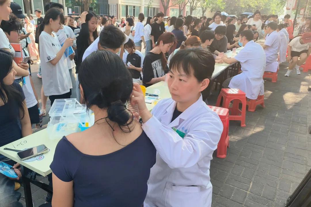 現(xiàn)場特別設(shè)置了中醫(yī)特色治療體驗(yàn)區(qū),針灸推拿科唐鵬程醫(yī)生還現(xiàn)場展示了針灸和中醫(yī)正骨特色療法,通過精準(zhǔn)的手法為師生們緩解了肩頸疼痛、腰肌勞損等常見職業(yè)病癥狀;中醫(yī)骨干護(hù)士宋锫镠通過中醫(yī)耳穴壓豆、刮痧等特色療法,讓師生們親身體驗(yàn)到了中醫(yī)的神奇魅力?;顒舆^程中還發(fā)放了健康知識宣傳頁,向師生們普及了常見病、多發(fā)病的預(yù)防、健康養(yǎng)生知識。