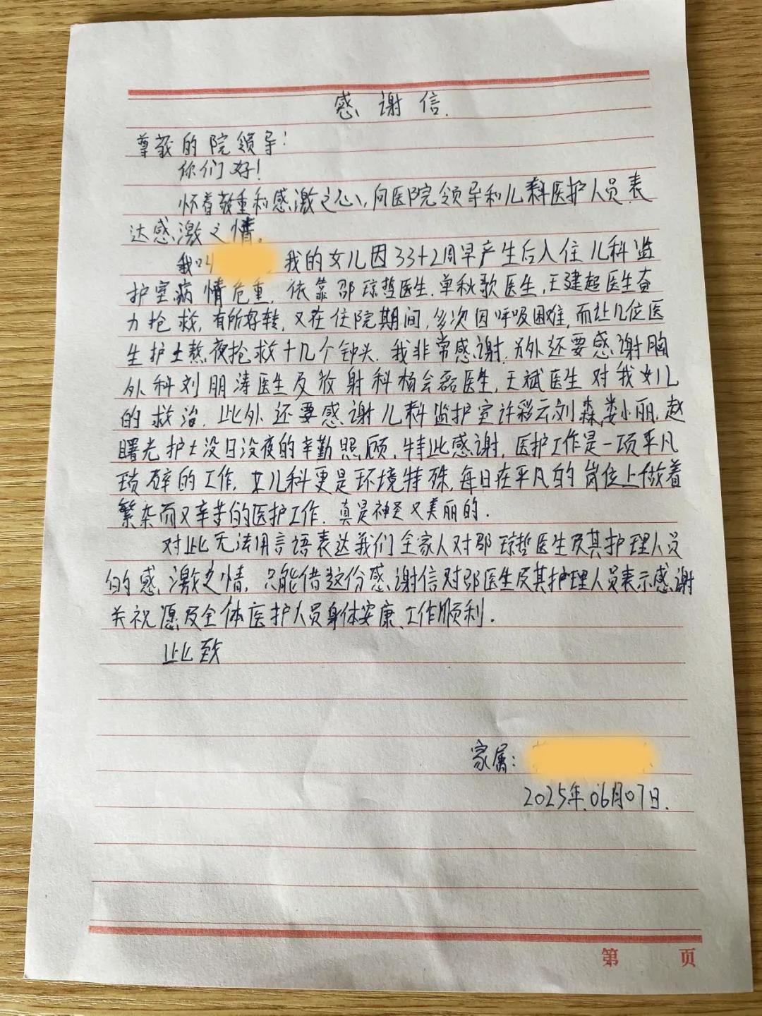 為表達對醫(yī)護人員的感激之情,孩子父母專門將一封感謝信送到醫(yī)院,稱贊醫(yī)務人員“真是神圣又美麗” !