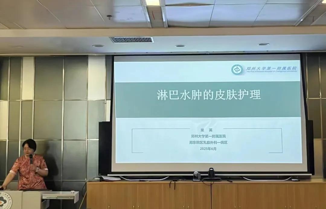 鄭大一附院乳腺外科栗英護士長現(xiàn)場演示《淋巴水腫皮膚護理黃金法則》“患肢防曬防蚊蟲、壓力袖套穿戴3要點、傷口應(yīng)急處理口訣”,患者認真學(xué)習(xí)記錄實用居家護理方法。